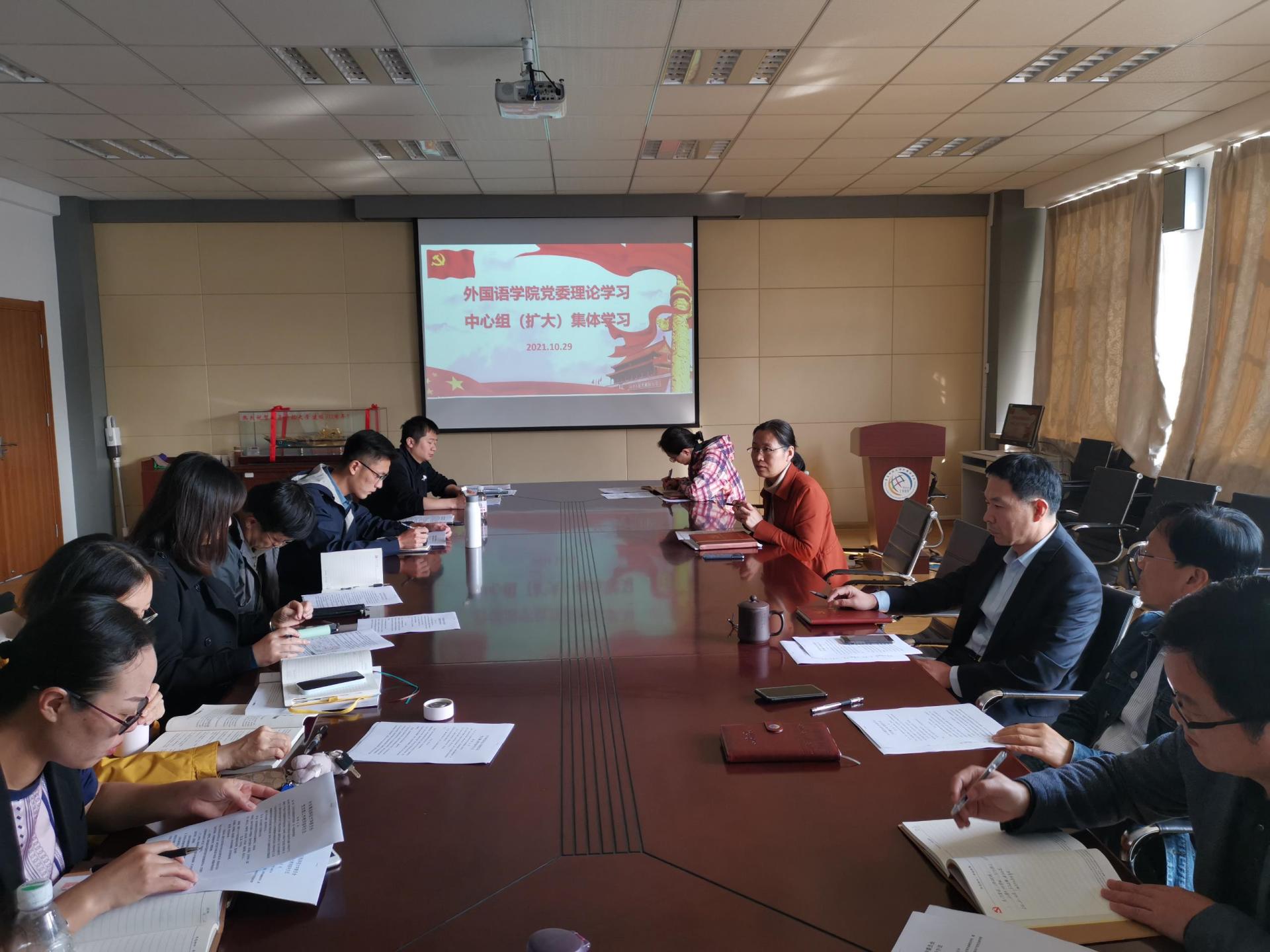 10月29号下午,外国语公司党委理论学习中心组(扩大)在公司517会议室举行集体学习,集体学习由公司党委书记曲斌艳主持,公司党委委员、党支部书记及政治辅导员参加。
