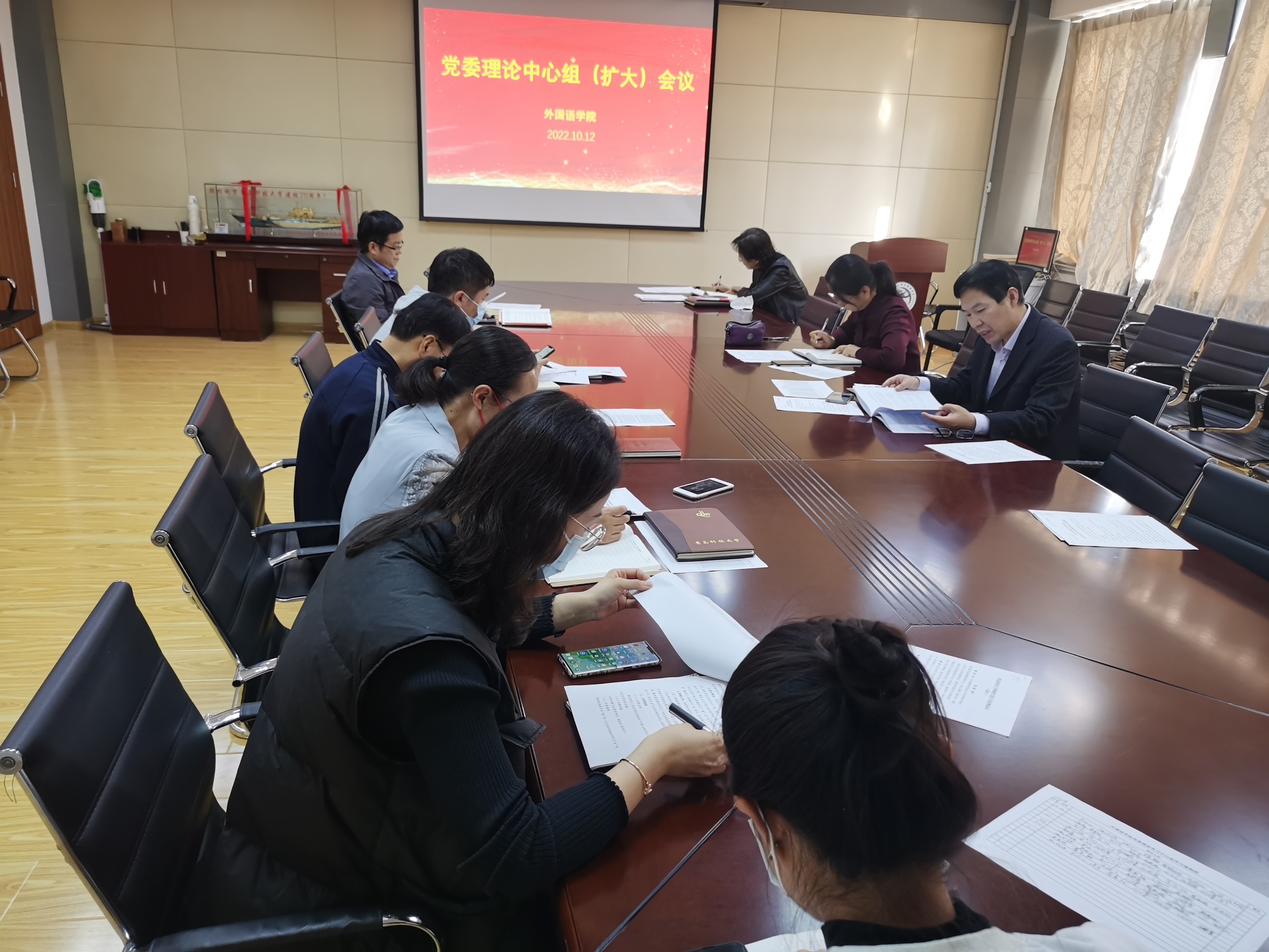 10月12日下午,外国语公司党委理论学习中心组(扩大)在公司517会议室举行集体学习,集体学习由公司党委书记曲斌艳主持,公司党委委员及政治辅导员参加。