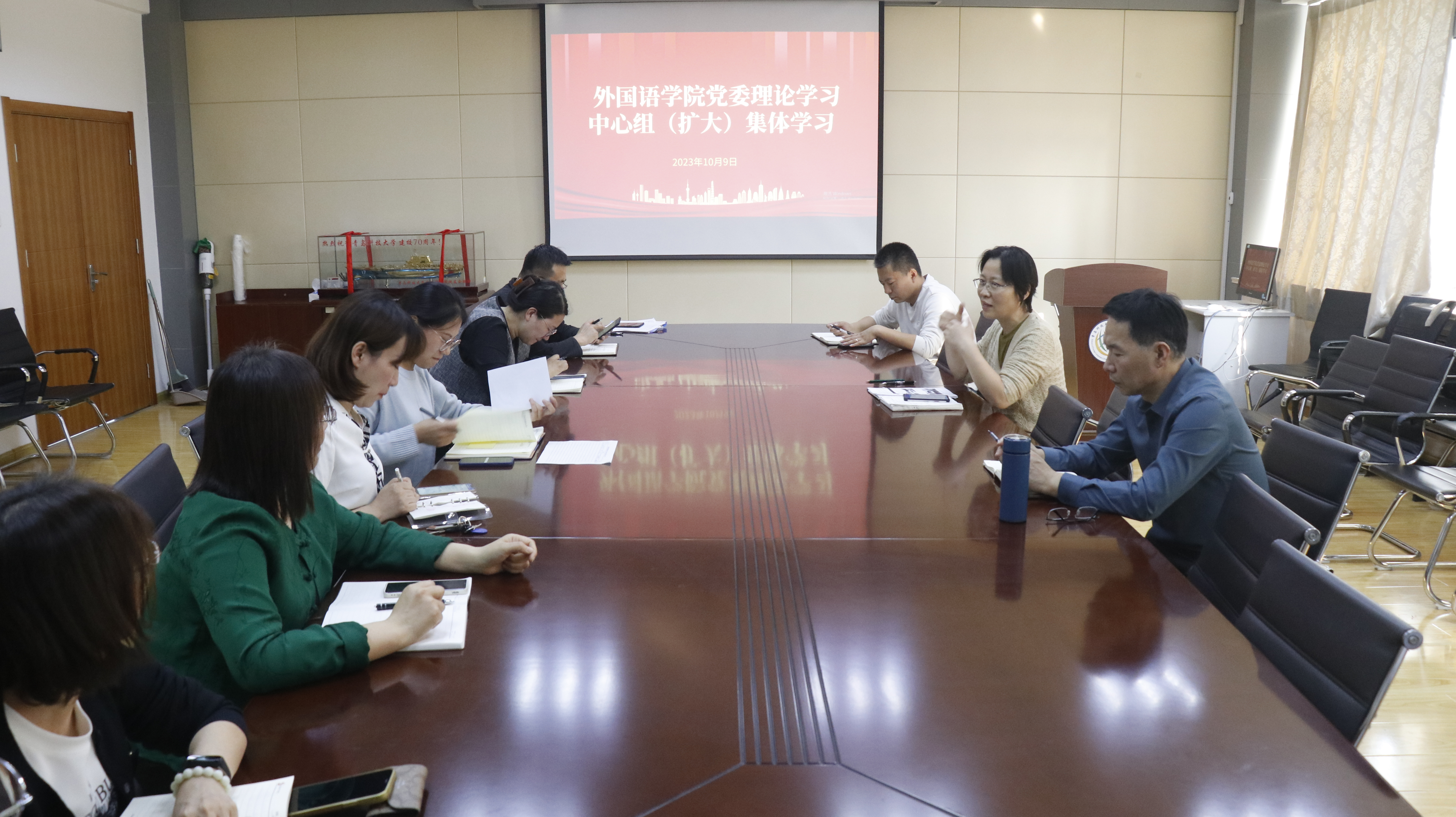 10月9日下午,外国语公司党委理论学习中心组(扩大)在公司517会议室举行集体学习。公司党委委员、党支部书记、团委书记参加此次学习。