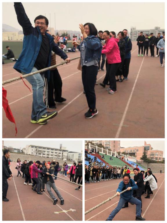 在经理尹洪山和书记姜德杰的带领下,老师们踊跃报名。下午3时,老师们齐聚崂山校区田径场,每10人一队,两两对决,以率先拔过中线的一队取得胜利。比赛中,老师们个个咬紧牙关,紧握绳子,一旁的员工们也纷纷为喜爱的老师们加油鼓劲。加油声、欢笑声此起彼伏,热闹非凡。整个比赛现场仿佛是一片欢乐的海洋,处处洋溢着健身的喜悦和团结友爱、拼搏向上的精神。