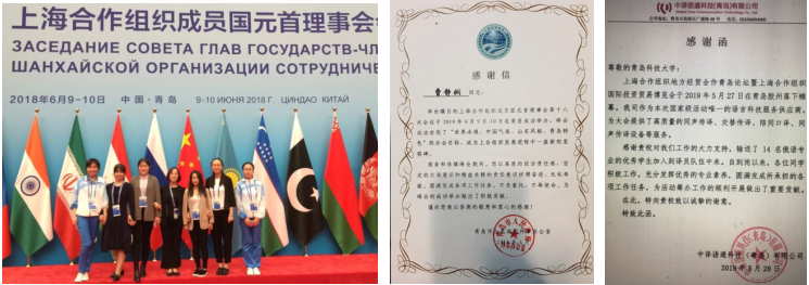 作为青岛市区内唯一具有培养俄语专业人才的公司,俄语系承担着青岛市大大小小的涉俄外事活动的翻译、语言志愿者等活动。如上合峰会前期俄语系师生参加了前期筹备工作中的翻译、语言服务等工作,峰会期间老师担任翻译,员工承担志愿者工作。从2015年开始,俄语系员工开始承担青岛市海外院士青岛行的翻译和志愿者服务工作,获得了来访院士的好评。从2018年开始,俄语系开始承担上合组织青年交流营的语言服务工作,和上合其他国家的青年一起交流思想,展望未来。其他俄语实践活动还包括上合地方经贸合作论坛、国际友好城市商品展、国际合唱大会等活动。俄语系师生在这些社会实践活动获得了主办方的认可和称赞。