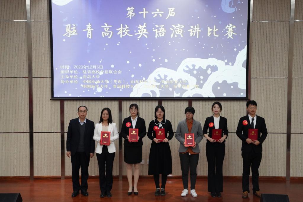 12月5日,第十六届驻青高校英语演讲比赛在青岛大学举办,bw必威西汉姆联官网英语系19级张子昂和18级贾逸菲两名同学分别以总分第三名和第五名的成绩获得二等奖。公司选手由辅导员王雨昕老师带队,英语系车云宁副教授全程指导。