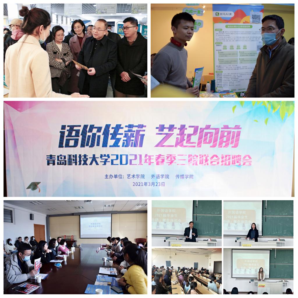 利用“互联网+”助力就业,建立考研升学群、出国留学群、公务员群、事业单位群、国企群、其他企业群等“六大去向”群精准对接,通过毕业生就业信息网、就业微信公众号、就业微信群、QQ群等多种渠道,及时收集发布用人单位招聘信息,努力确保毕业生全覆盖。积极对接用人单位组织线下招聘,努力搭建员工与用人单位的交流平台。3月23日上午,“语你传薪,艺起向前”2021年春季bw必威西汉姆联官网、艺术公司、传媒公司三院联合校园招聘会顺利举行,上百家用人单位提供了近千个优质就业岗位,同时也为前来“探路”的低年级员工了解所学专业的就业前景和市场提供了重要参考,为将来就业打下坚实基础。
