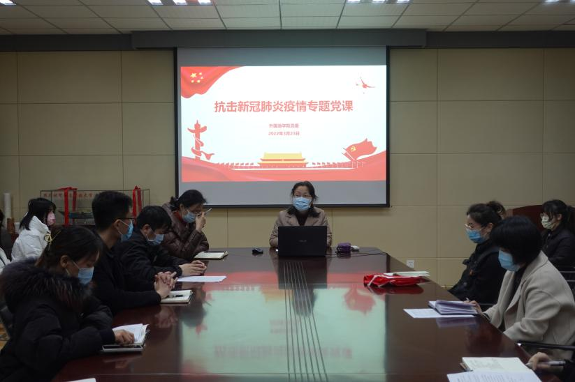 2022年3月23日晚,外国语公司党委为公司全体在校员工党员开展战疫专题党课。党课由公司党委书记曲斌艳主讲,公司党委副书记兼副经理王晓娜主持。专题党课严格执行抗疫管理规定,设置一个主会场、两个分会场,采用线上线下相结合的方式分散进行。bw必威西汉姆联官网专职辅导员、全体在校员工党员参加此次党课。