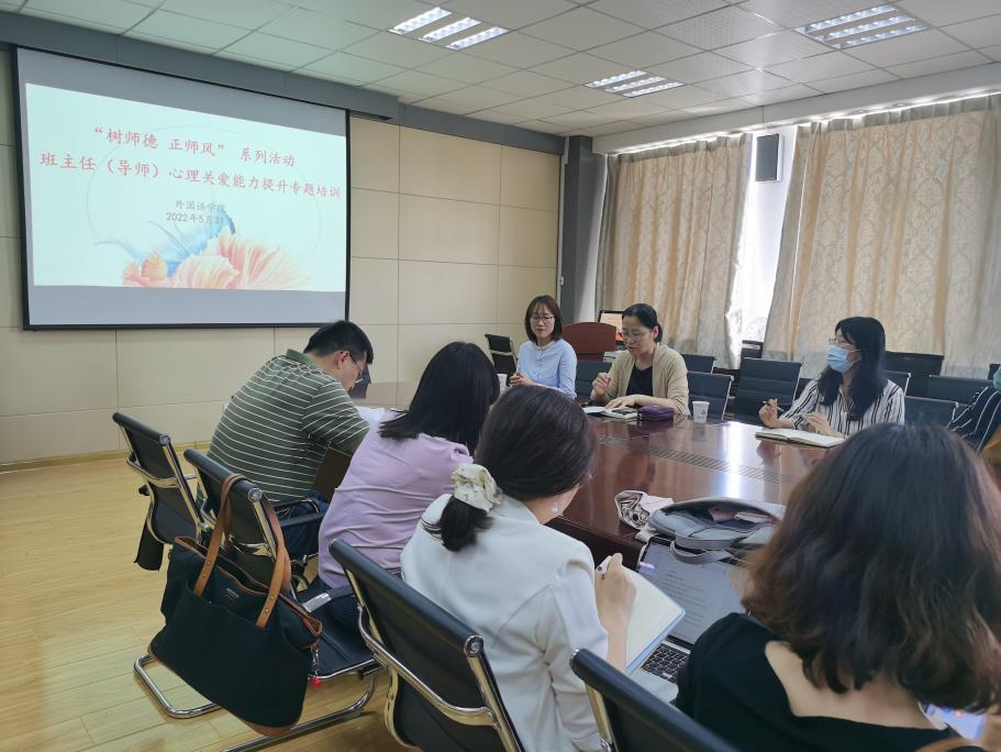 2022年5月31日下午,bw必威西汉姆联官网“树师德 正师风”系列活动——教师心理关爱能力提升专题培训在公司517会议室进行,公司邀请校心理健康教育与研究中心主任李海玲为公司全体系部主任、班主任(导师)进行相关培训。