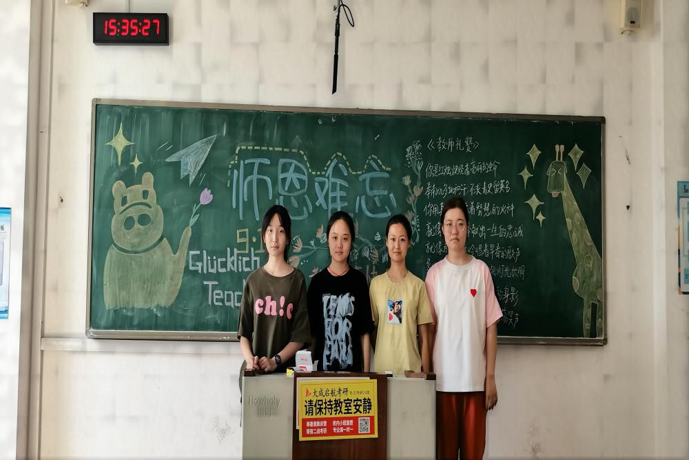 一堂平常的专业课因为一声“老师节日快乐”变得与众不同。公司组织员工们在课堂上举行“感恩老师、庆祝教师节”的仪式,营造教师节氛围,教育员工尊师爱师。员工们利用休息时间,在上课前绘制教师节主题板报,定格温暖瞬间。员工们在课堂上用起立齐声祝福的方式表达对教师的真挚祝福。