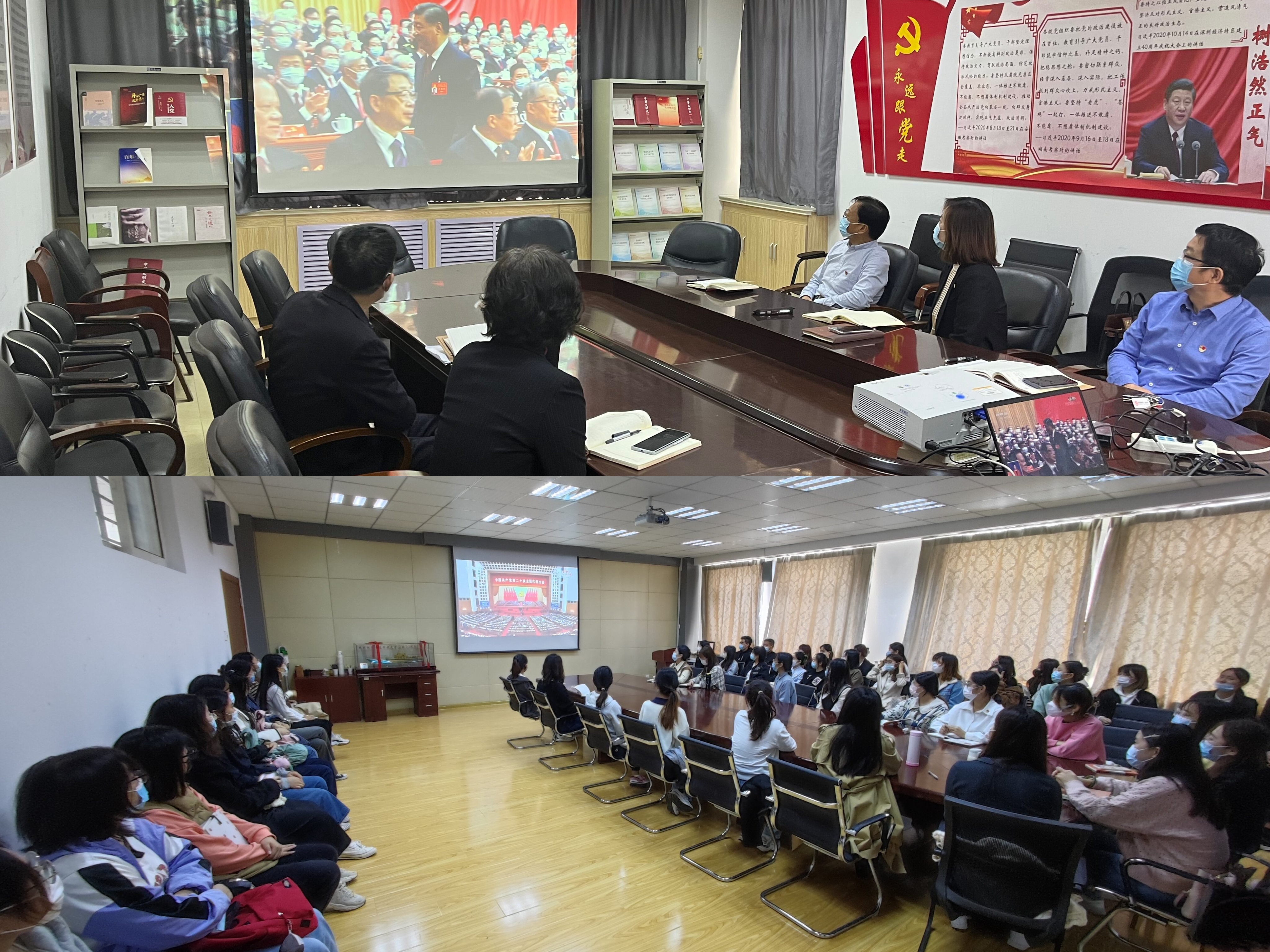 10月16日上午,外国语公司党委组织全院师生收听收看党的二十大盛况直播。公司党委理论学习中心组成员在公司楼502会议室集中收看,公司研究生党支部、员工党支部党员在外院楼517会议室集中收看,2022年秋季入党积极分子和发展对象在弘毅楼B区102教室集中收看,各党支部、团支部组织本支部党员、团员通过多种形式收听收看。公司广大师生认真聆听、学习习近平总书记代表十九届中央委员会所作的报告,备受鼓舞,大家纷纷表示要持续深入学习领会报告精神,以实际行动贯彻报告精神,为全面建设社会主义现代化国家、全面推进中华民族伟大复兴贡献力量。