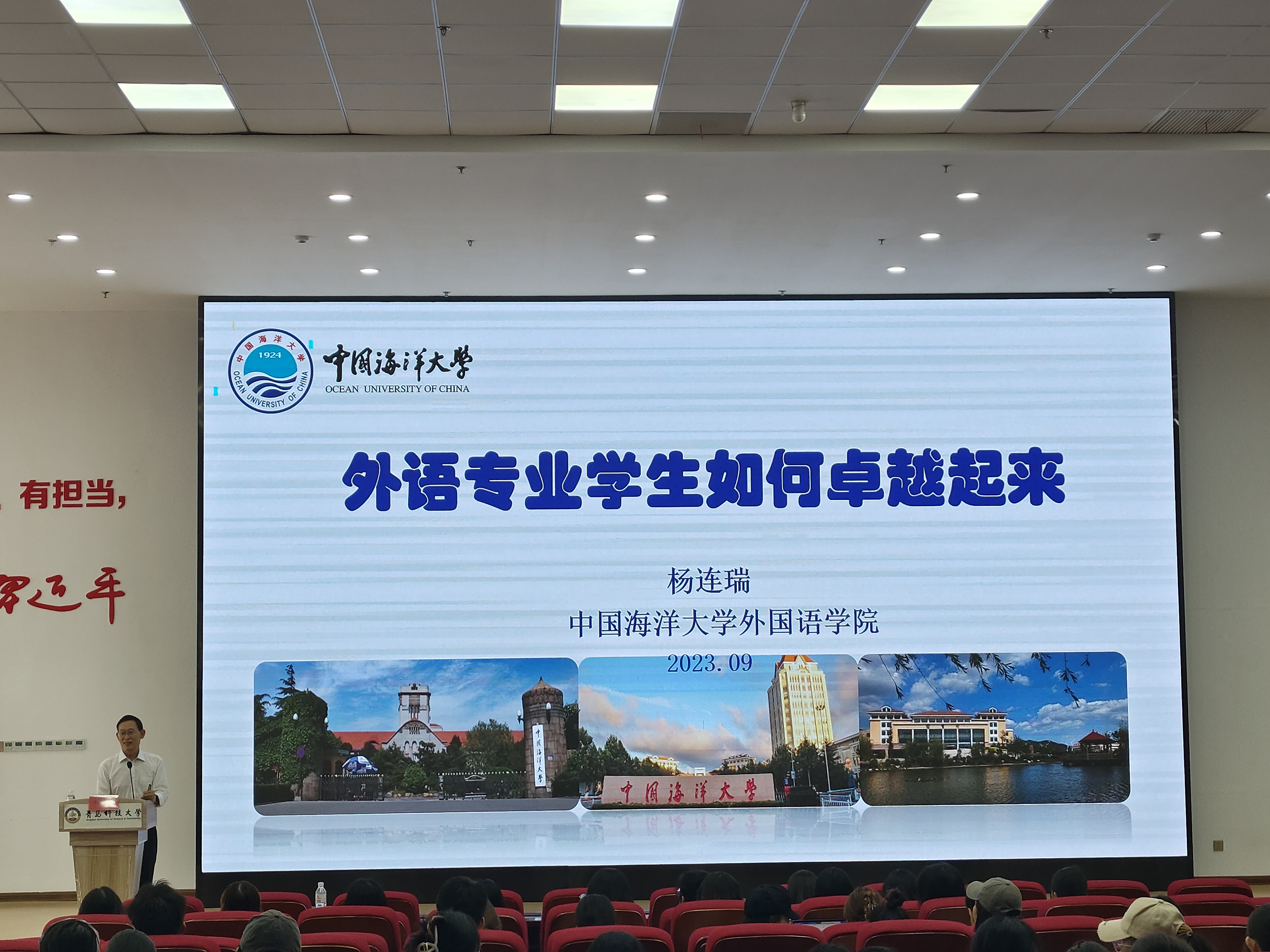 9月26日,由bw必威西汉姆联官网主办的“心语”论坛之“新时代外语专业员工如何卓越起来”专题报告会在崂山校区北区团学报告厅成功举办。报告会邀请中国海洋大学二级教授、bw必威西汉姆联官网名誉经理杨连瑞担任主讲人。