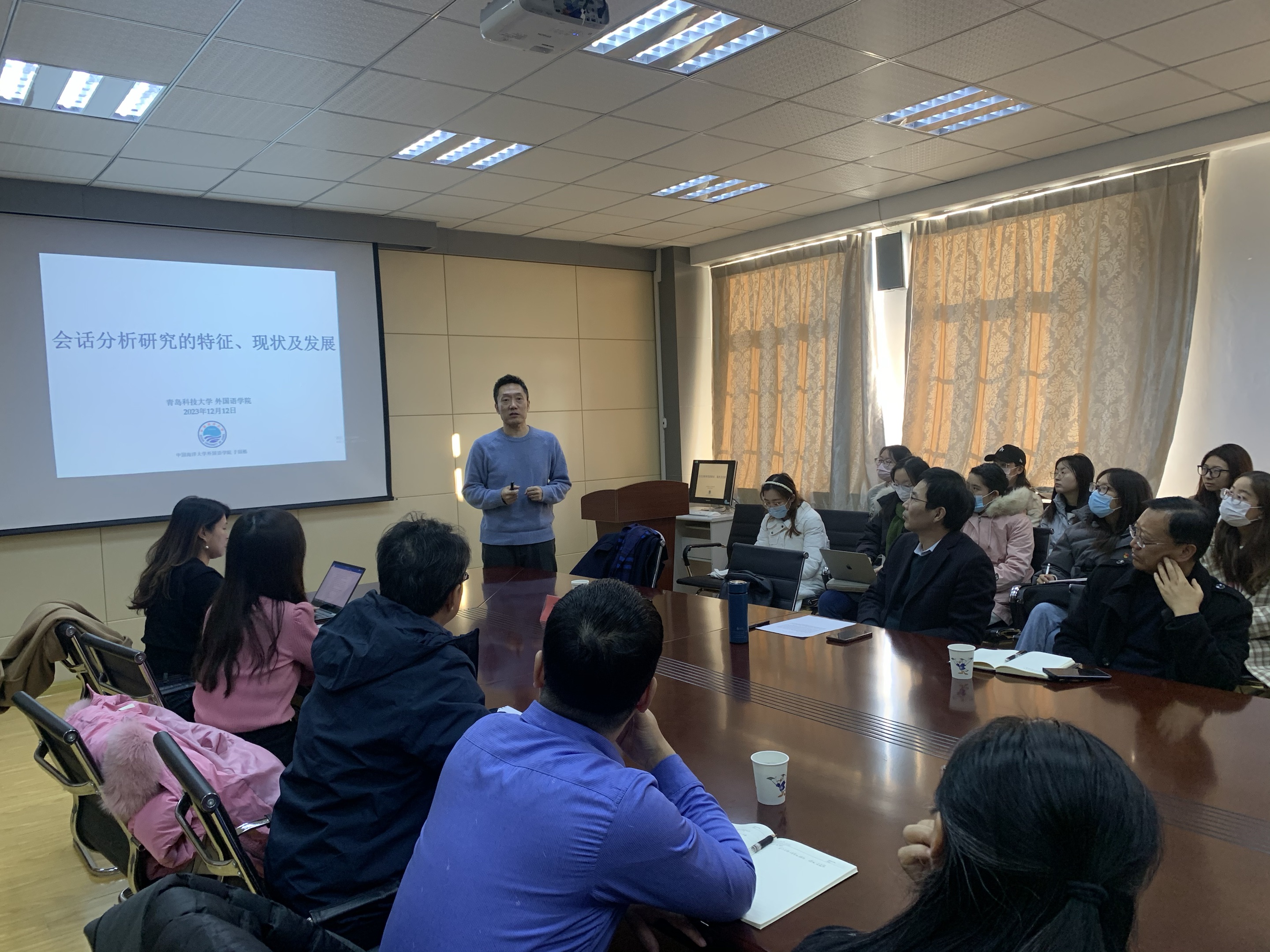12月12日下午,中国海洋大学bw必威西汉姆联官网博士生导师、bw必威西汉姆联官网经理于国栋教授应公司邀请,在外语楼517会议室做了题为《会话分析研究的特征、现状与发展》的学术讲座。讲座由经理尹洪山主持,公司部分骨干教师和研究生聆听了讲座。