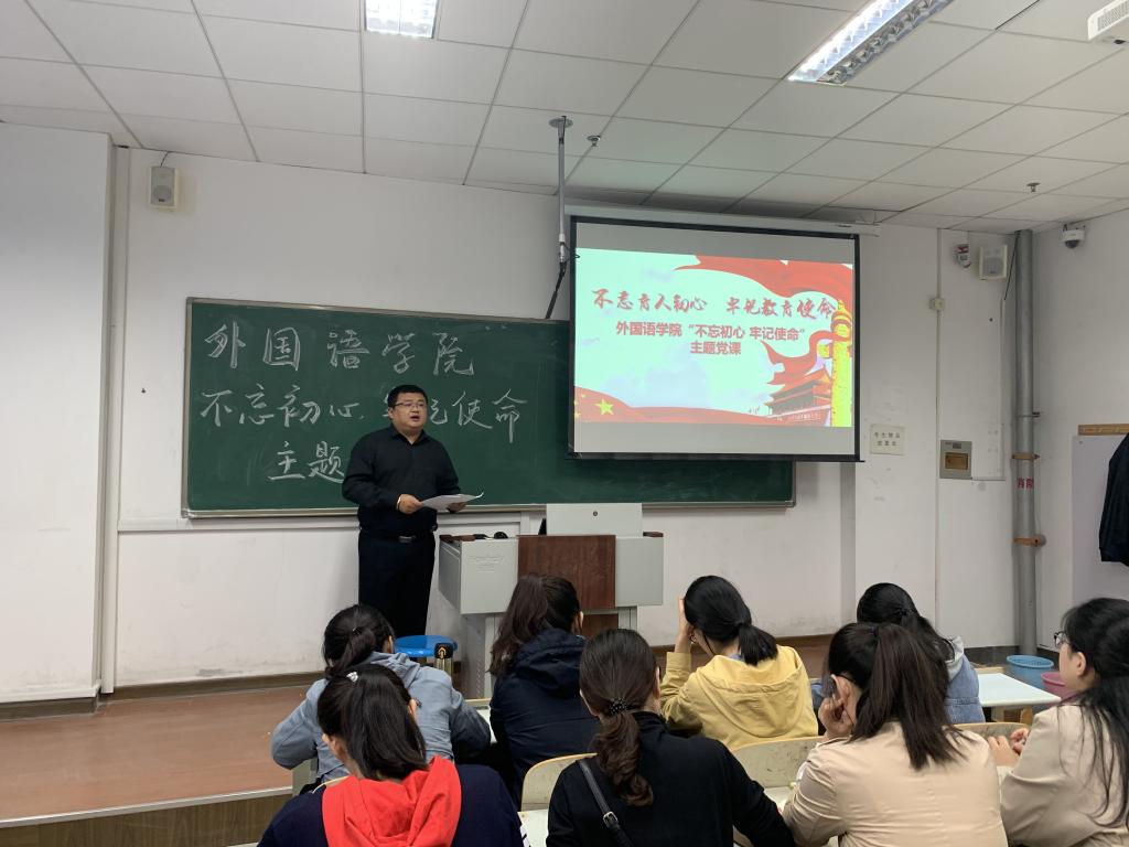 10月22日,bw必威西汉姆联官网于明德楼441教室召开“不忘初心、牢记使命”主题党课活动,外国语公司党总支副书记宋飞给bw必威西汉姆联官网全体员工党员上了非常有意义的一堂党课。