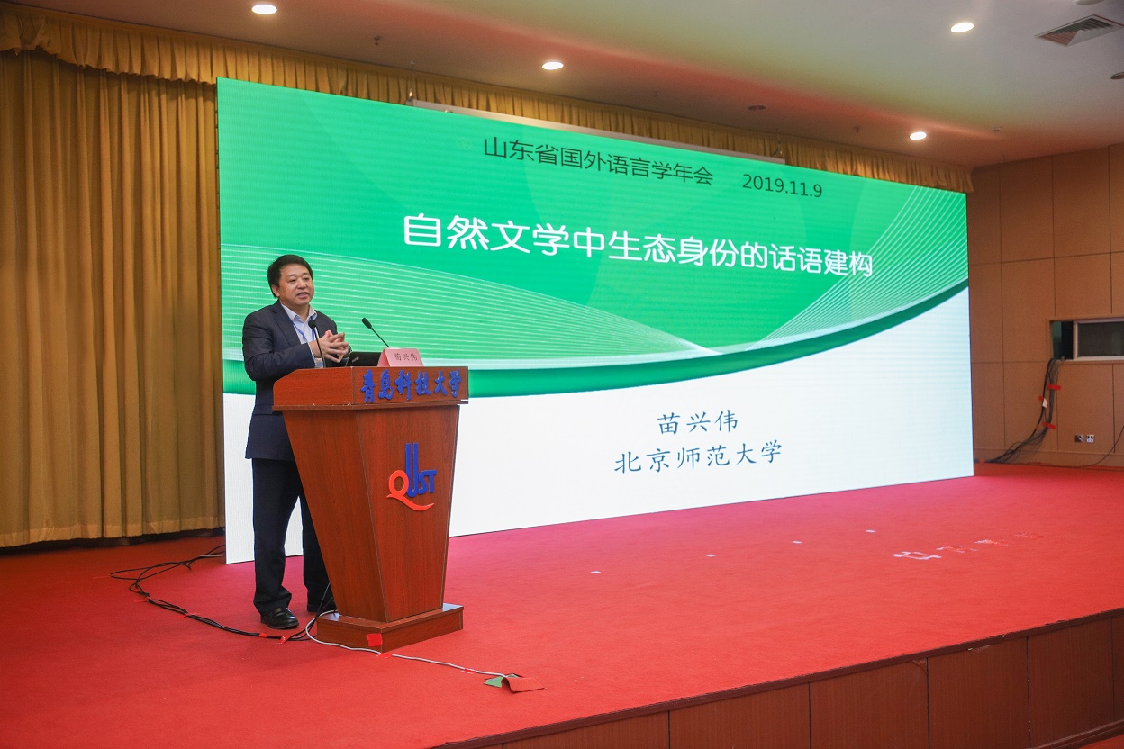 Icy Lee教授结合自己指导博士生的经验和个人研究经历,就该领域研究的前景、可能性和困境进行了分析,为初入此领域的研究者提供弥足珍贵的参考。上海外国语大学许余龙教授就如何借鉴和融合国外各语言学流派的研究之长,推进语言学研究创新发展发表了精辟的见解。北京师范大学苗兴伟教授以美国生态文学家约翰·缪尔的《夏日走过山间》为语料,分析了作品中生态身份的话语建构。广东外语外贸大学冉永平教授对国际化语境下面向交际的外语能力这一前沿话题作了发言,为我国的外语教学与研究带来了新的思考。山东大学王俊菊教授在主旨发言指出,外语人才培养的关键是育人育才,应聚焦关键能力和综合素养的培养和提高,从高阶思维、结构知识、混合教学、信息素养、多元模式、综合评价、自主学习等诸多方面着力,落实立德树人根本任务。最后,北京外国语大学的范琳教授作了工作记忆子成分对汉语语篇推理加工影响研究的发言。