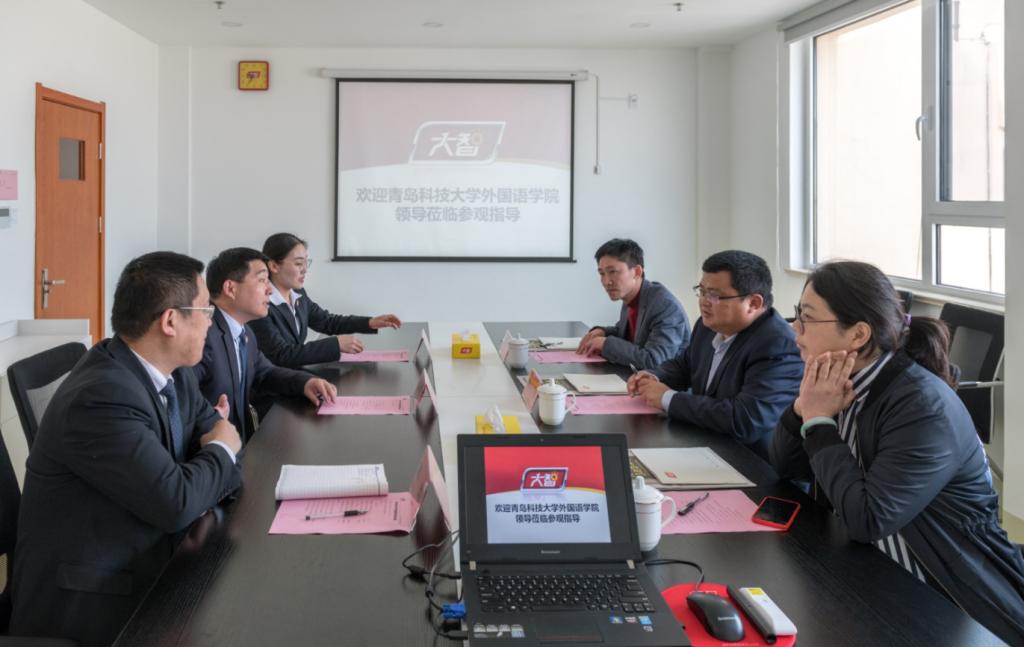 在大智集团人力资源部经理李建峰等人的陪同下,宋飞等人实地参观了大智教育大楼,考察了集团办公环境及运行模式,并与大智集团董事长张维东等人就教育思想大讨论如何推动员工就业进行了座谈交流。座谈会上,宋飞详细介绍了公司专业设置、人才培养以及员工实习就业等情况,并就人才培养、实习实践、外语类人才需求等方面和大智教育集团负责人进行了深入交流,全面了解了企业对外语类人才的需求情况。