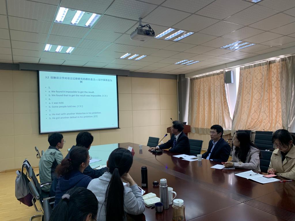5月8日下午,上海交通大学公司教授、博士生导师俞理明应公司邀请在外语楼517室作了题为《语言迁移新视角》的报告。报告会由尹洪山经理主持,副经理吕耀中、经理助理刘靖及部分教师和研究生参加了报告会。