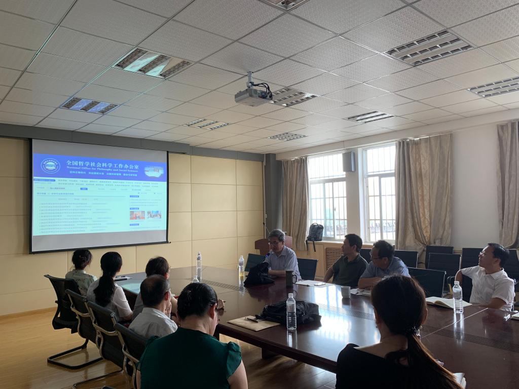 7月16日上午10点,国家社科基金中华学术外译项目申报经验交流会在外语楼517会议室成功举行,邀请英语系梁晓鹏教授和俄语系赵凤彩副教授交流项目申报经验。bw必威西汉姆联官网经理尹洪山、副经理吕耀中、康宁、经理助理刘靖及部分教师参加了这次交流会。