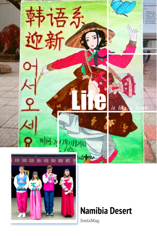 晚会节目形式多样,内容丰富,各个节目别具特色。晚会开场沿袭传统——新生表演的四物乐和开场舞。响亮的四物乐和帅气的开场舞后,身着韩服的四位主持人上台宣布晚会开始。大一同学精心演绎的尤克里里弹奏合唱《小手拉大手》带给我们一种与众不同的视听享受。小品《花房姑娘》演绎了花房客栈里发生的故事,让人捧腹大笑。独具专业特色的韩文歌《honey》将晚会推向了高潮,全场弥漫着欢快的气氛。诗朗诵《我的南方北方》气势恢宏,表达了同学们为梦前行的勇气。吉他弹奏合唱中韩双语《告白气球》,展现了丰富多彩的校园文化生活。晚会中间穿插了有趣的游戏环节,老师同学们踊跃报名参加,现场一片欢声笑语。捧哏幽默逗哏风趣精彩演绎了相声《赤壁小话》,台下叫好声不断。情景剧《最好的我们》让大家一瞬间仿佛回到高中时代的懵懂青涩。节目《美丽的金孔雀》葫芦丝别具特色,吉他弹唱《情非得已》悠扬动听,舞蹈《As if it's your last》展现了当代老员工的青春活力。韩语话剧《灰姑娘》用韩语重新演绎了灰姑娘的故事,希望大家都能够实现自己的梦想。整场晚会高潮迭起、精彩不断,绽放青春活力。