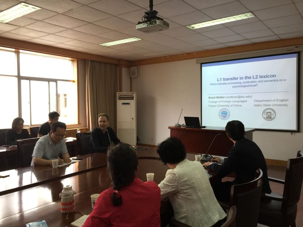 5月29日日下午,美国爱达荷州立大学教授Brent Wolter应外语公司邀请在经管楼313室作了题为《搭配使用中的哪些方面促成心理学层面的二语加工和产出?》的报告。报告会由尹洪山经理主持,副经理任素贞、吕耀中、经理助理刘靖及部分教师和研究生参加了报告会。