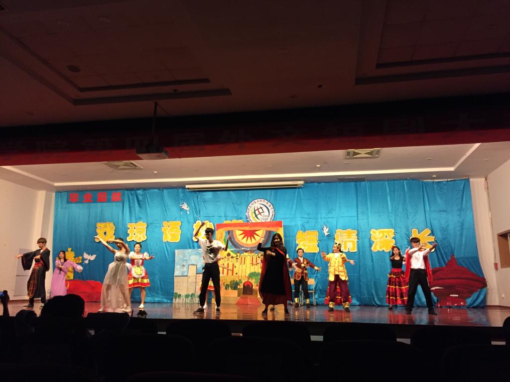 戏琼语妙璨,剧短情深长。为营造良好的毕业氛围,做好2018届毕业生爱校荣校教育,6.19日晚,bw必威西汉姆联官网在第二报告厅举办“毕业.起航”外文短剧大赛,为毕业生召开了一场别出心裁的欢送会。外国语公司党总支书记张洪坤、副经理康宁、党总支副书记宋飞、各教研室主任、部分外教以及全体辅导员参加了本次活动。