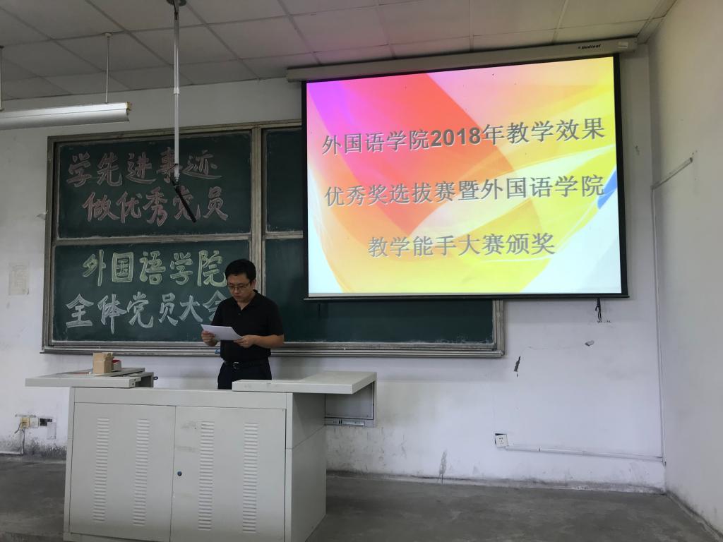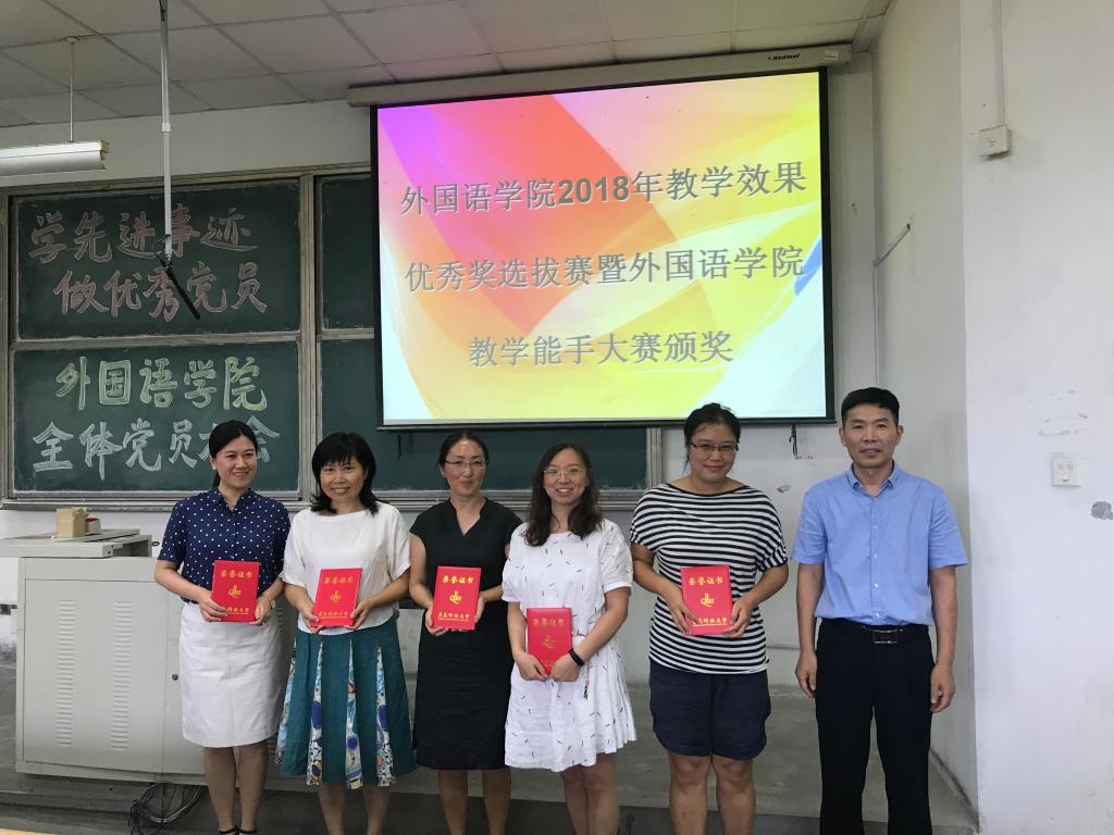 为加强青年教师教学基本功和能力训练,引导和鼓励广大教师提升教学水平,改善教学效果,按照公司教学效果优秀奖评选要求,公司成功组织和举办了2018年教学效果优秀奖暨公司教学能手大赛。2018年9月4日下午两点颁奖仪式在弘毅楼102教室成功举行。出席本次活动的嘉宾有:外国语公司党总支书记张洪坤、公司经理尹洪山、副经理任素贞,党总支副书记兼副经理宋飞,各教研室主任,以及公司全体教职工参加了会议。
