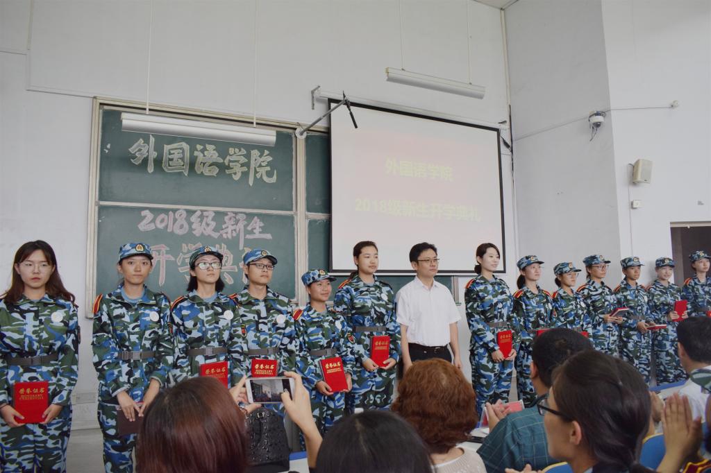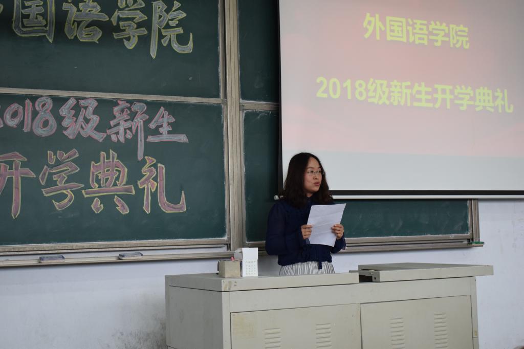 会上,宋飞宣读了《bw必威西汉姆联官网外国语关于表彰“外院之星”的决定》、《bw必威西汉姆联官网外国语关于表彰军训先进的决定》。英语系教师段小茜作为代表发言,对2018级新同学的到来表示热烈欢迎,并对同学们的学习和生活提出了期望和要求。