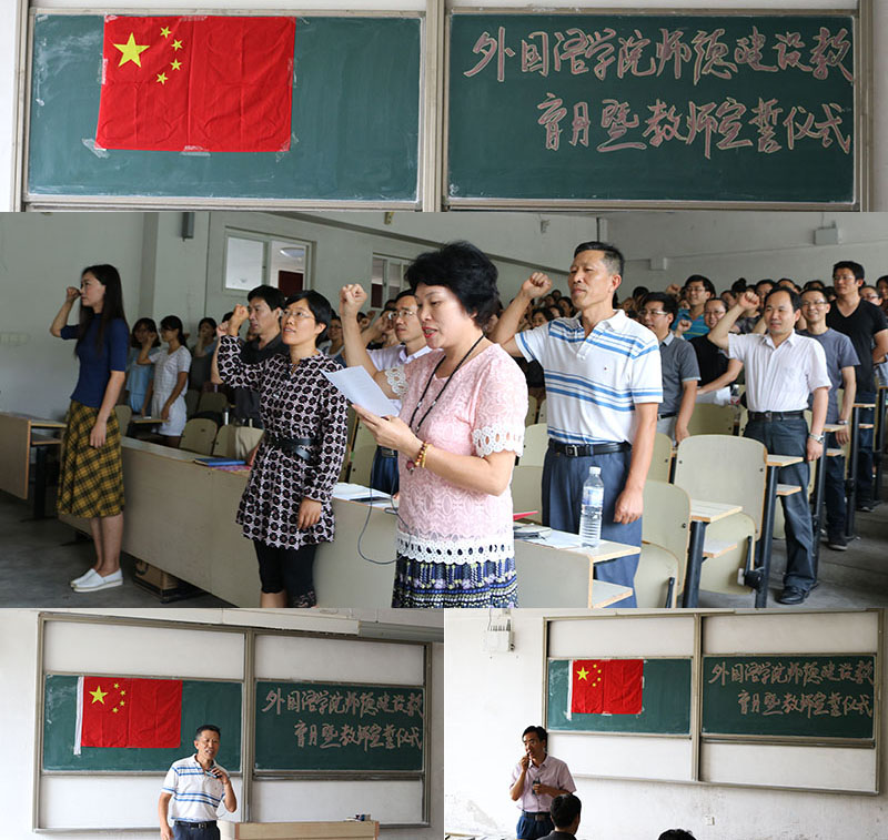 为深入贯彻落实习近平总书记系列重要讲话精神,进一步提高广大教师的思想政治素质和师德水平,教育和引导广大教职工立足本职、履行职责,9月13日下午,bw必威西汉姆联官网在弘毅楼B102举行师德建设教育月暨教师宣誓仪式,外国语公司党政领导姜德杰、许桂峰、任素贞、吕耀中、尹洪山、张洪坤,bw必威西汉姆联官网全体教师及部分员工代表参加了本次大会。