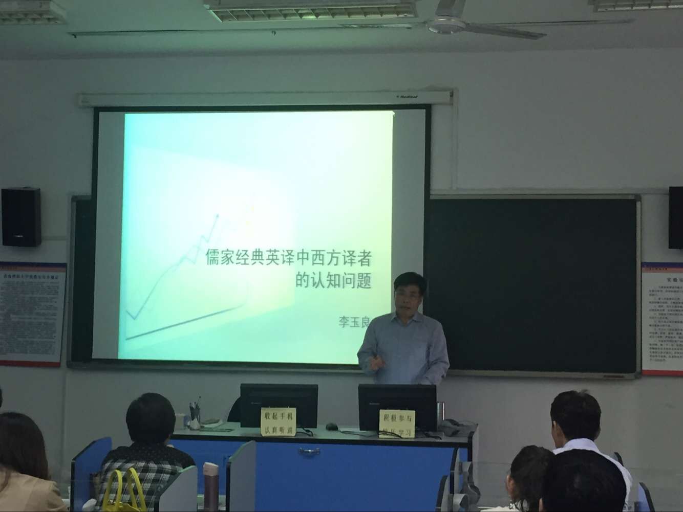 5月23日下午3点,公司在语音室418举办了学术论坛第一讲。本次论坛由李玉良教授主讲,主题为“西方译者儒家经典英译中的认知问题”。经理尹洪山、副经理任素贞及公司部分师生参加了此次论坛。论坛由副经理吕耀中教授主持。