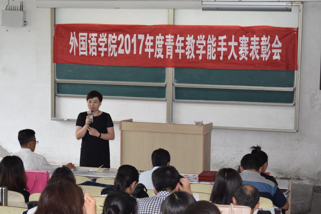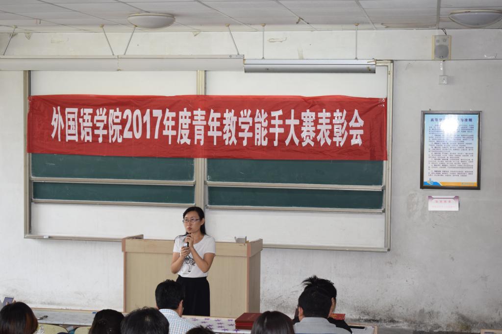 会上,任素贞宣读了《关于表彰2017年青年教师教学能手大赛获奖教师的决定》,尹洪山、姜德杰、吕耀中、宋飞为获奖老师颁发了获奖证书。会后,一等奖获得者巫莉丽、翁瑾两位老师分别围绕教学设计、授课感想以及现场教学组织等方面与参会老师进行了交流。