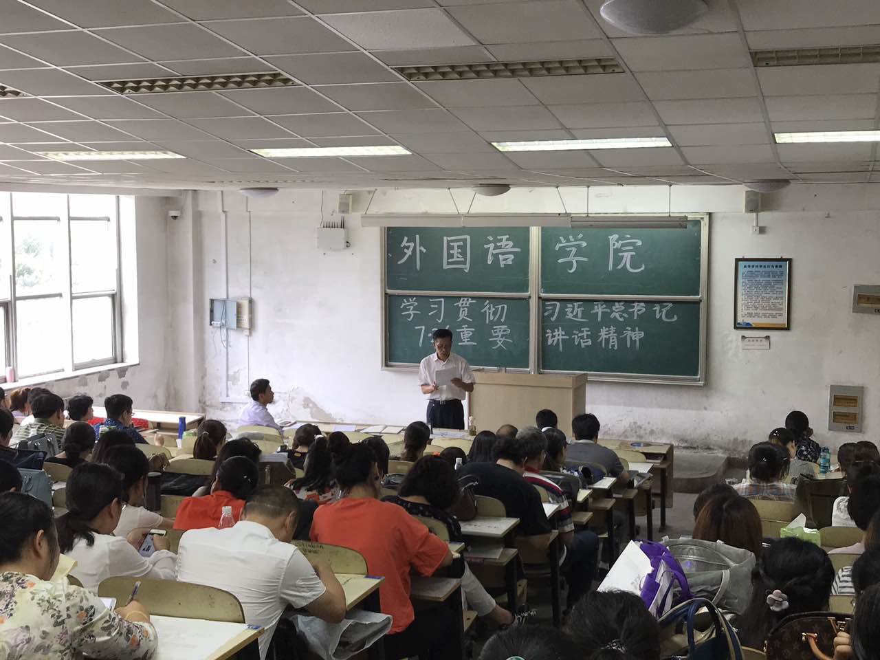 会上,党总支书记姜德杰带领全体教师集中学习了习近平总书记“7.26”讲话摘要和人民日报的八篇社论,希望全体教师要认真学习宣传有关讲话和会议精神,营造相关精神学习宣传的良好氛围,进一步增强责任意识、奉献意识和服务意识,切实将思想和行动统一到习近平总书记重要讲话精神上来,以更好的精神状态迎接党的十九大胜利召开。
