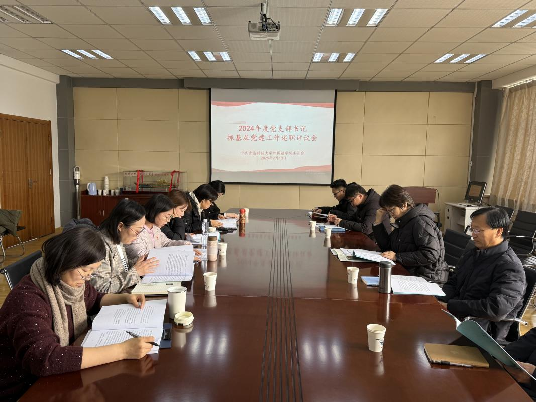 述职评议采取现场述职方式进行,大学外语第一教研室党支部书记孟婧、大学外语第二教研室党支部书记王丽、英语系党支部书记王丽、办公室党支部书记宋丽超、多语种党支部书记于豪、员工党支部书记马昆、研究生党支部书记胡然逐一进行了现场述职。党委书记曲斌艳采用“一述一评”的方式对各党支部书记进行点评,充分肯定每个支部的工作特色和亮点,明确指出工作中存在的不足和改进方向。随后,与会人员对各支部述职情况进行现场评议。