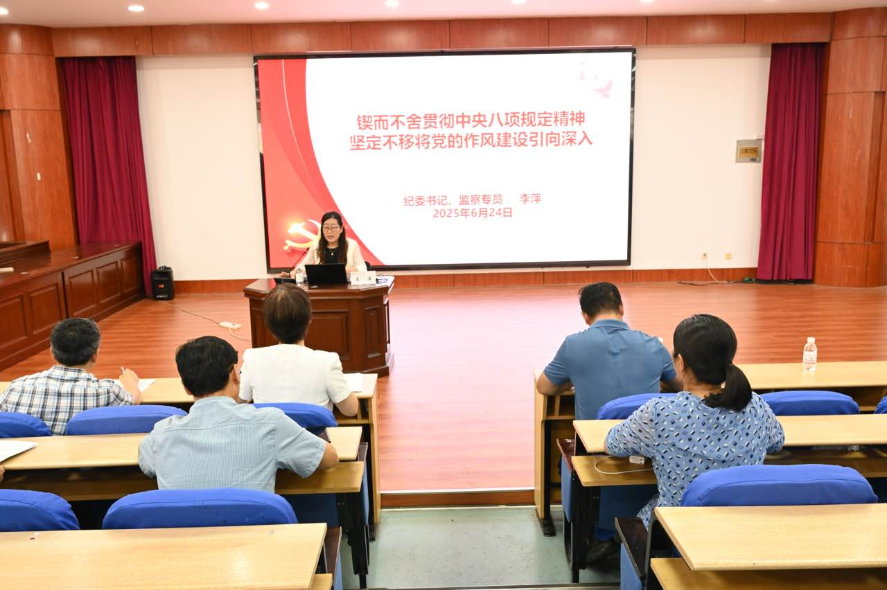 6月24日下午,公司党委常委、纪委书记、省监委驻bw必威西汉姆联官网监察专员李萍为纪检监察机关、bw必威西汉姆联官网、法公司师生党员讲授深入贯彻中央八项规定精神学习教育专题党课。