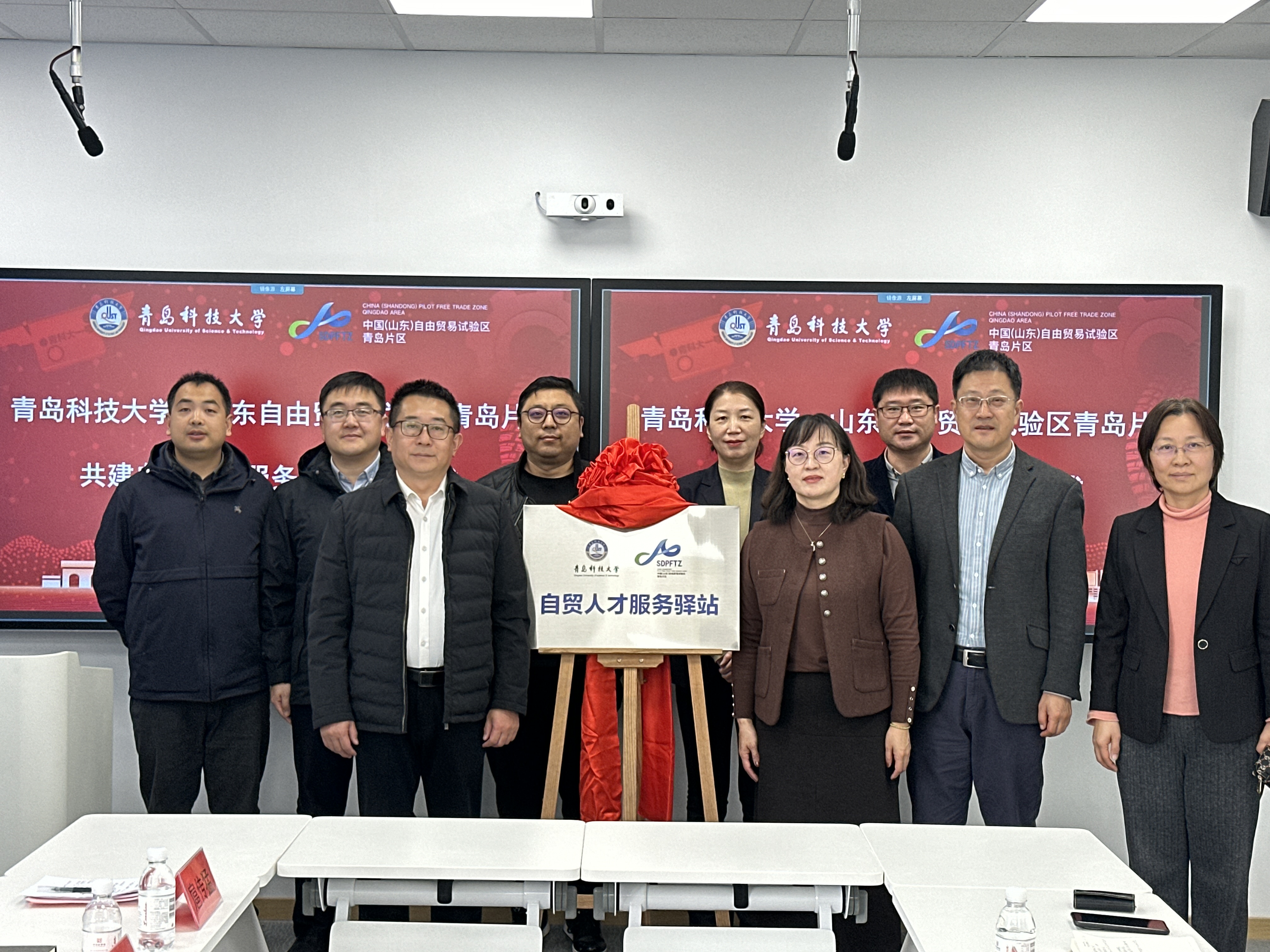 11月18日上午,bw必威西汉姆联官网与山东自由贸易试验区青岛片区共建“自贸人才服务驿站”揭牌仪式在bw必威西汉姆联官网会议室举行。青岛自贸创新研究中心人力资源与社会保障处处长杨东、青岛才企综合服务集团人才服务板块负责人毕晓阳,bw必威西汉姆联官网员工工作部部长王丽、外国语公司党委书记曲斌艳、经理王灏等嘉宾出席仪式并为驿站揭牌。