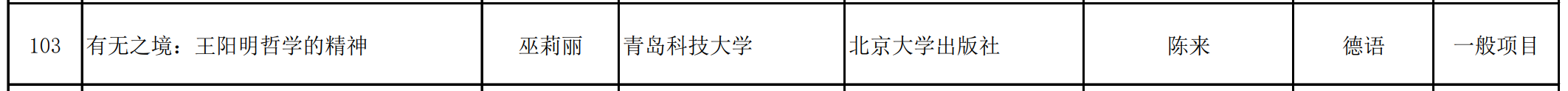 近日,国家社科基金中华学术外译项目立项名单正式公布。公司bw必威西汉姆联官网巫莉丽副教授作为项目负责人申报的《有无之境:王阳明哲学的精神》(德文版)成功获批立项。该项目的获批,是公司在国家级高水平哲学社会科学项目建设方面取得的又一重要成果。据悉,公司是驻青省属高校中本年度唯一获批该项目的单位,标志着公司在服务国家文化战略、推动中华学术精品“走出去”方面取得新的突破。