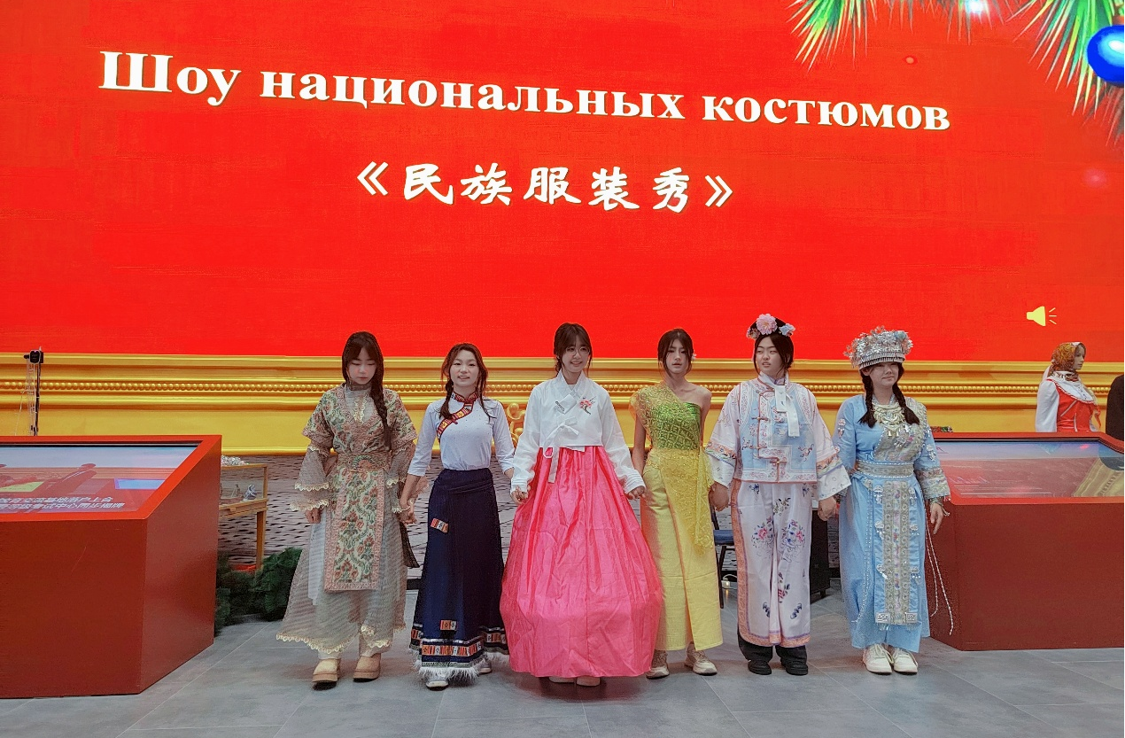 活动后半程,浓郁的中国风情将庆典推向又一高潮。气势恢宏的中文独唱《天地龙鳞》,唱响中华文明的深厚底蕴;随后登场的中华少数民族特色服装秀,依次展示藏族、维吾尔族、满族、朝鲜族、苗族、傣族等民族的华美服饰,宛如一幅流动的中华文化多元一体画卷,赢得现场阵阵掌声。中俄文化艺术在此刻交织共鸣,深刻诠释了文明互鉴、美美与共的内涵。
