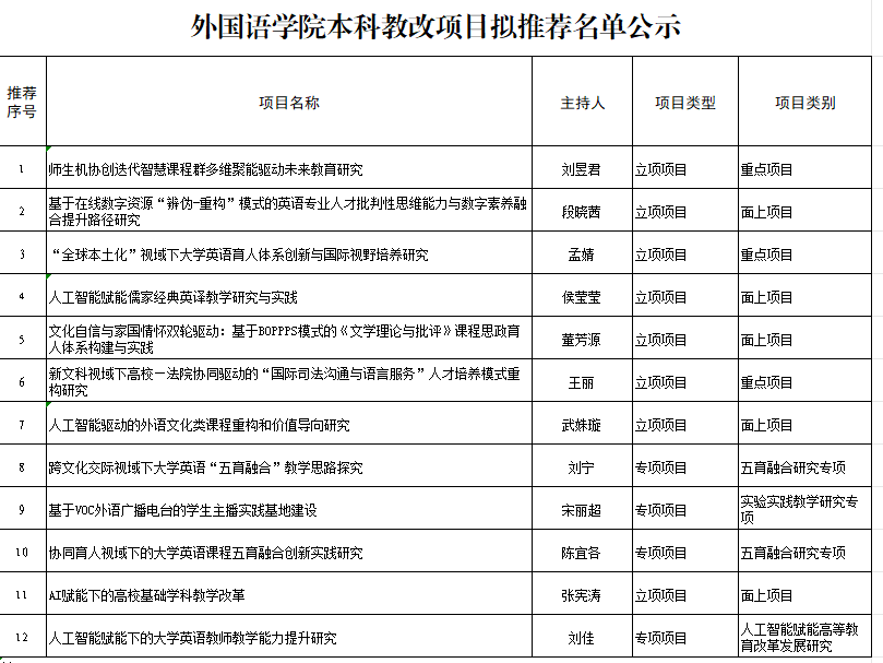 经项目负责人申报、专家匿名评审,现将2025年本科教改项目拟推荐名单公示如下: