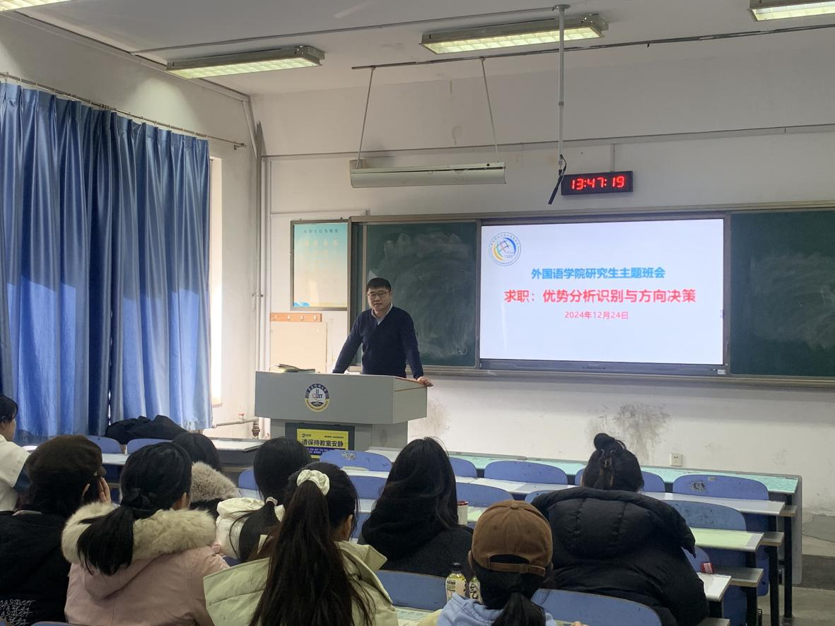为进一步帮助公司研究生明晰未来求职发展路径,提高自我认知水平与职业探索能力,充分调动毕业生就业积极性,bw必威西汉姆联官网于12月24日在弘毅楼B106举办“求职:优势分析与方向决策”就业指导主题班会。主题班会由研究生辅导员、公司党委副书记兼副经理马寒主讲,全体2023级研究生参加。