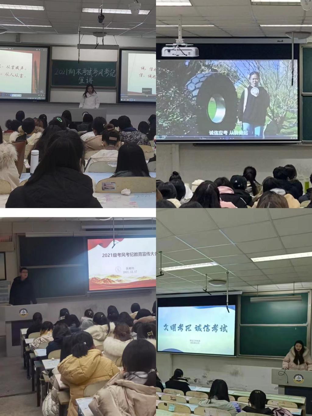2021年秋季学期期末考试在即,为进一步加强学风建设,严肃考风考纪,加强诚信教育,营造一个公平公正的考试环境,12月17日晚,bw必威西汉姆联官网四个年级在弘毅楼教室内同时开展了2021年秋季学期考风考纪教育宣传大会。