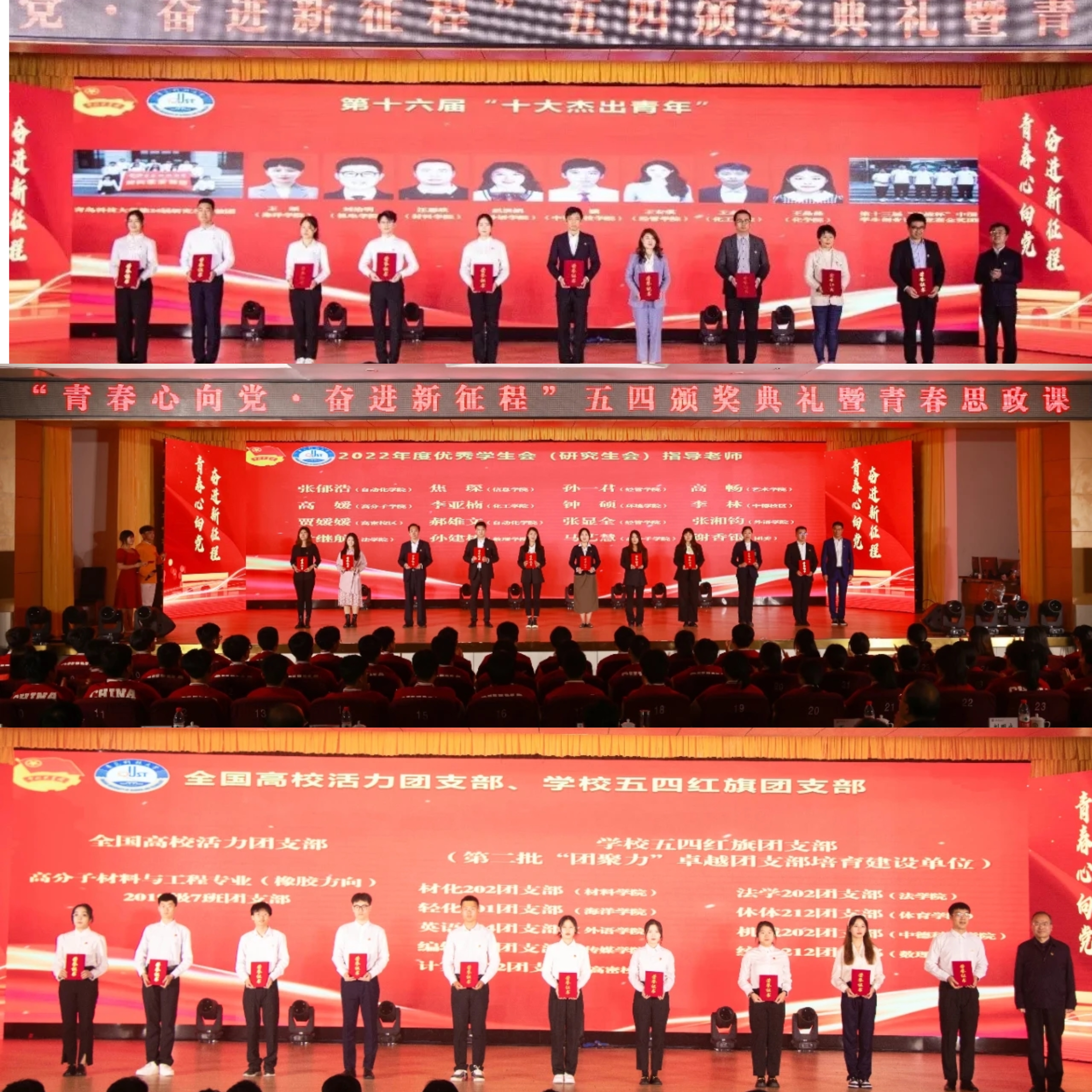 在颁奖典礼上,公司赵洪娟教授获得了公司第十六届“十大杰出青年”荣誉称号,公司研究生会荣获2022年度优秀研究生会,团委张湘钧老师荣获优秀研究生会指导老师荣誉称号;英语204班团支部获评五四红旗团支部。