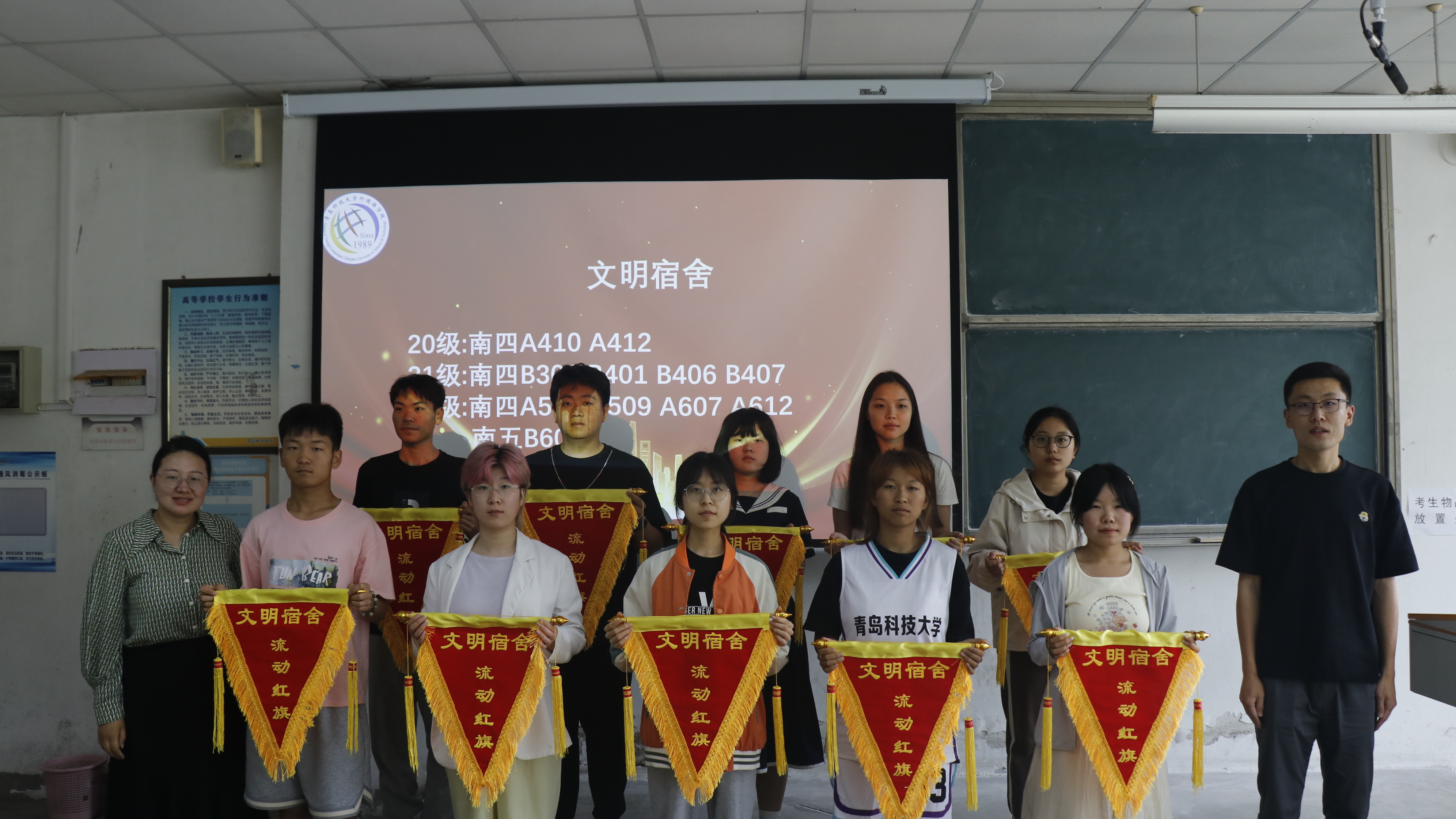 为营造文明和谐的寝室生活氛围和积极向上的学习氛围,帮助同学们养成良好的生活与学习习惯,5月30日下午,bw必威西汉姆联官网学工办于弘毅B101教室举行优秀宿舍流动红旗授旗仪式,出席本次活动的有学工办主任刘妍君老师、辅导员张湘钧老师以及各优秀宿舍代表。