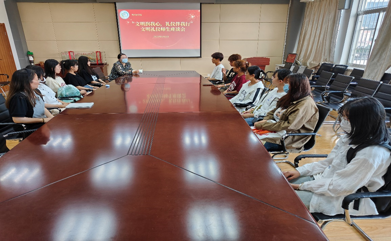 为推进外院学子精神文明程度的提高,培养员工良好的精神风貌,公司开展了文明礼仪师生座谈会,了解了员工在文明礼仪方面存在的问题,并对同学们提出了要求,希望同学们能严格要求自己,养成文明行为礼仪,从身边的小事做起,争做一名文明守纪的好员工。其中员工骨干尤其要做好表率,待人礼貌,交往和谐,语言文明,使同学之间和谐共处,有序生活。