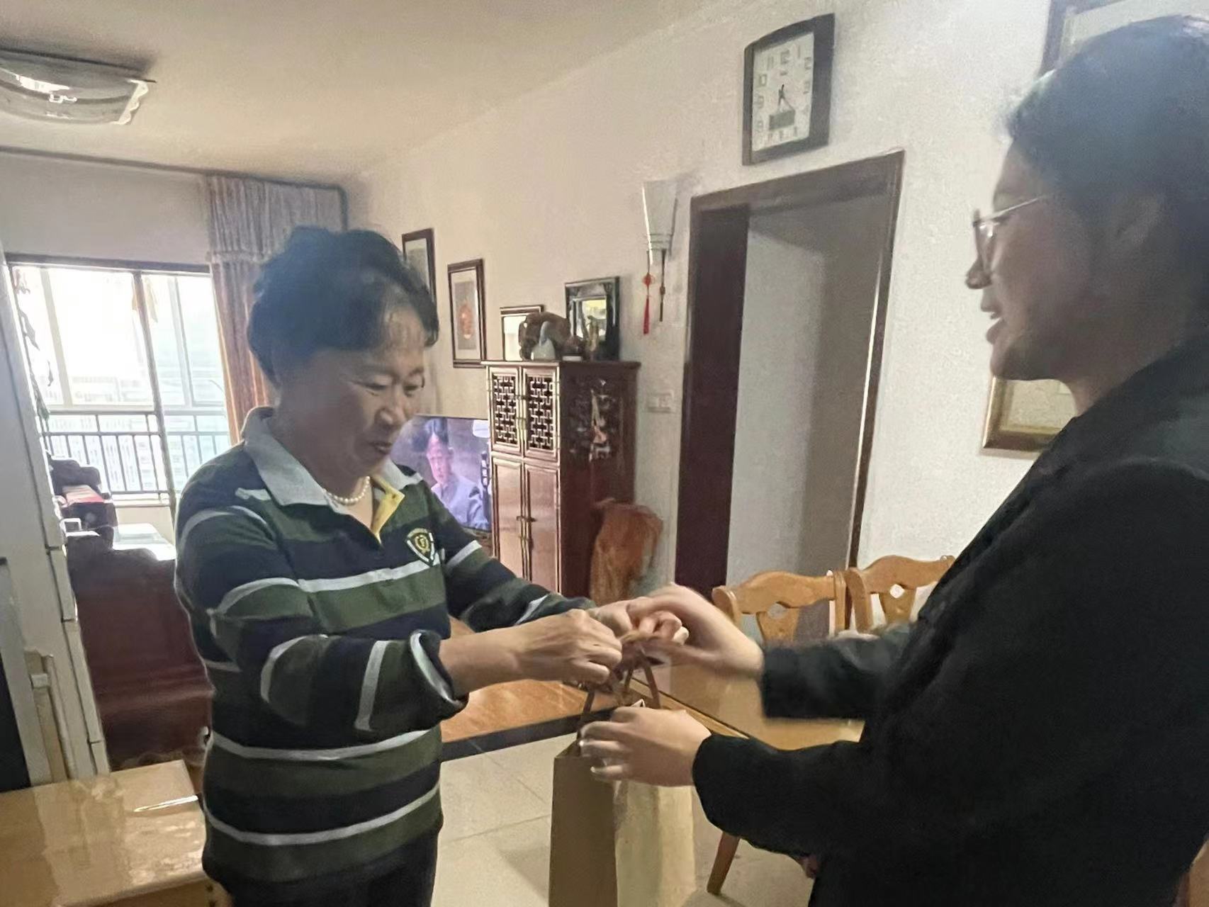 志愿者们还走进老人的家里,陪伴老人们聊天,了解老人的生活和喜好,听他们讲述过去的故事,同时给社区老人送上了暖心大礼包,祝愿他们身体健康,让他们感受到温暖和关爱。