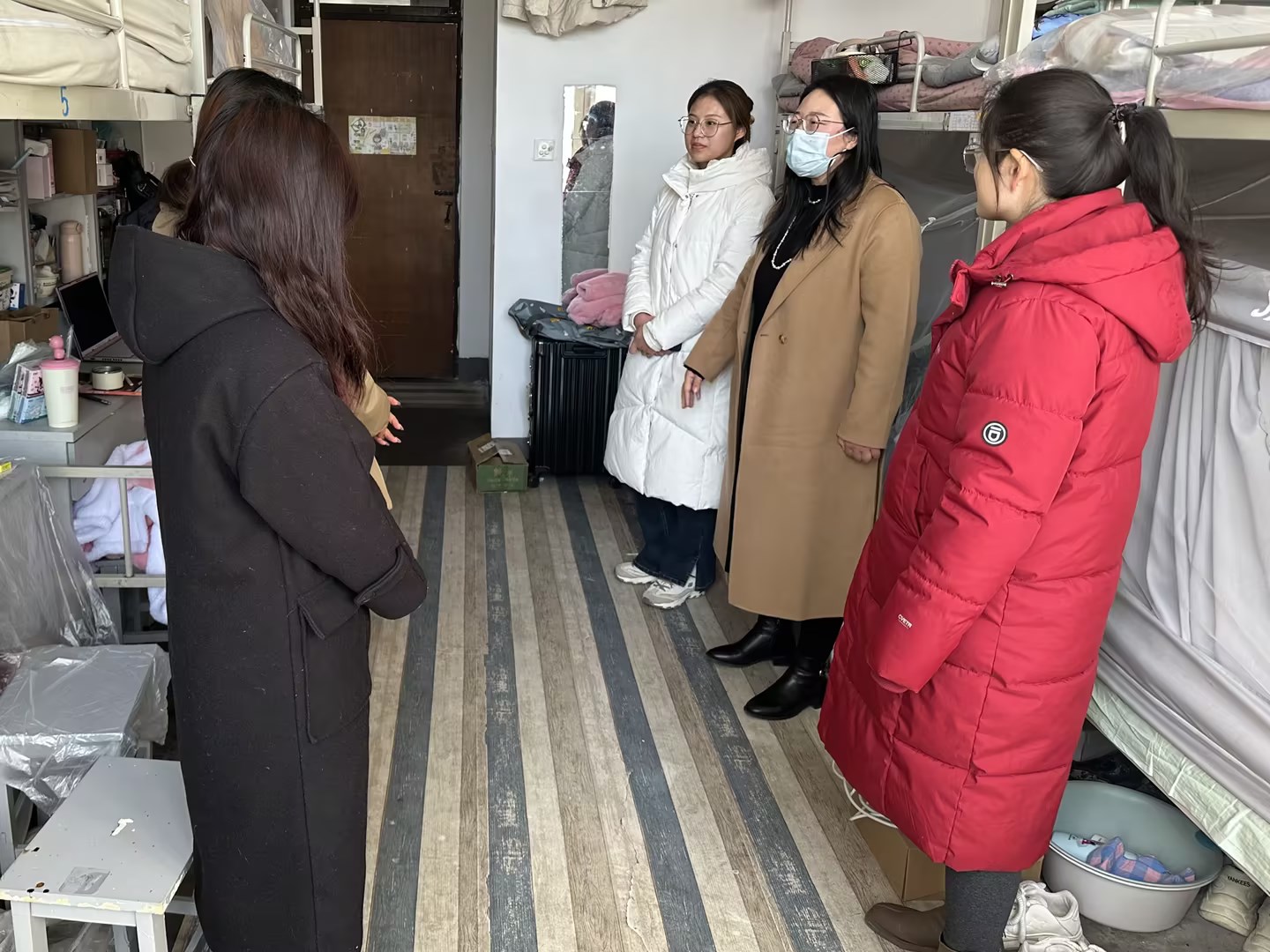 随后,公司全体辅导员对已返校员工宿舍进行了走访,对违章电器、电动车室内充电、违规停放等安全隐患进行了全面排查,并就文明宿舍创建、和谐氛围营造等方面为同学们提供了建议。