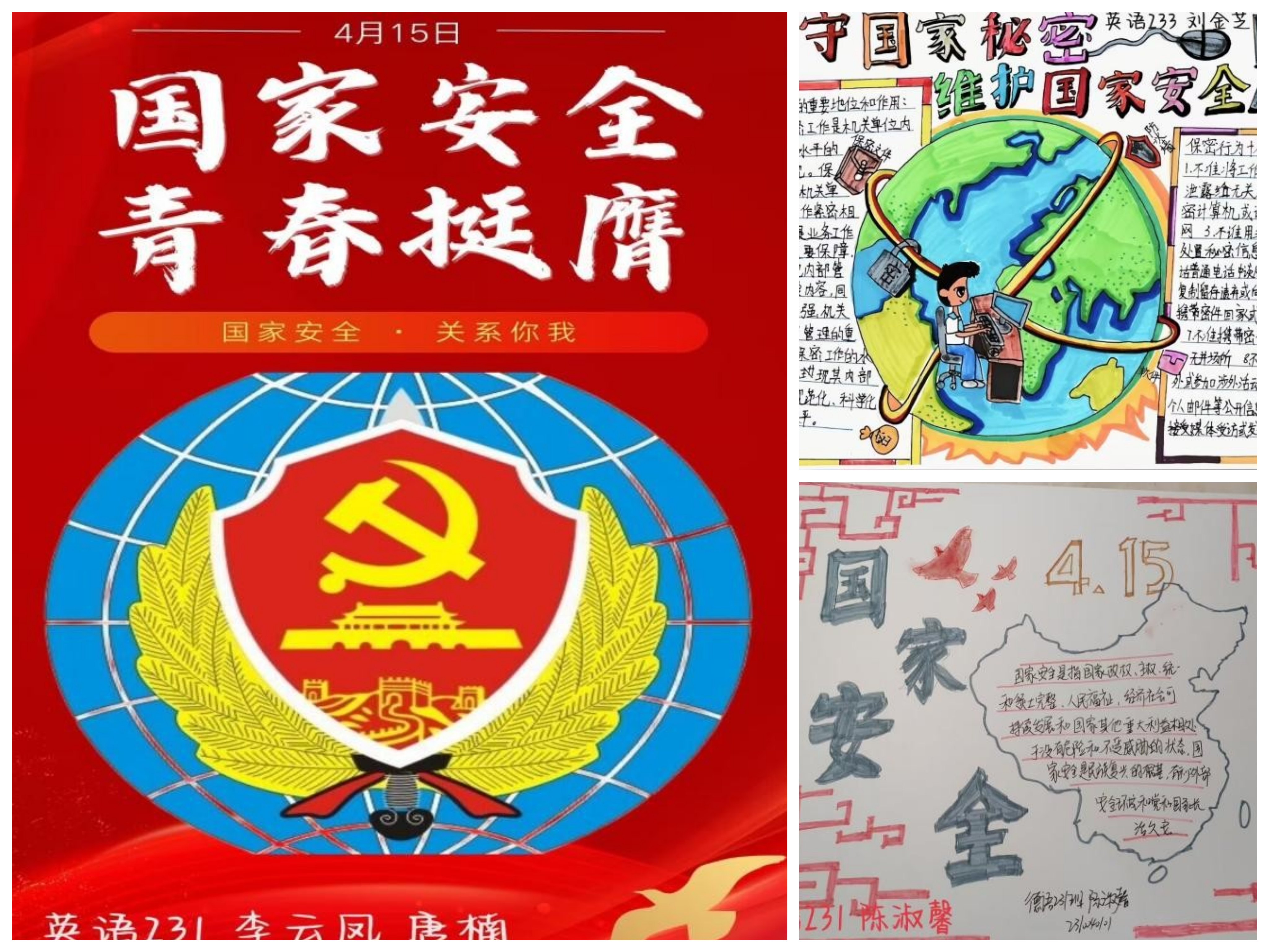 作品汇聚青春力,理想担当献国安。4月10日至4月14日,公司团委开展“国家安全,青春挺膺”总体国家安全观主题融媒体作品征集活动,活动得到同学们的积极响应,提交包含手抄报、海报、漫画、短视频等形式作品50余份。此次活动引导员工将总体国家安全观融入作品设计中,激发外院学子爱国情怀,勇于担当使命,为维护国家安全贡献自己的力量。