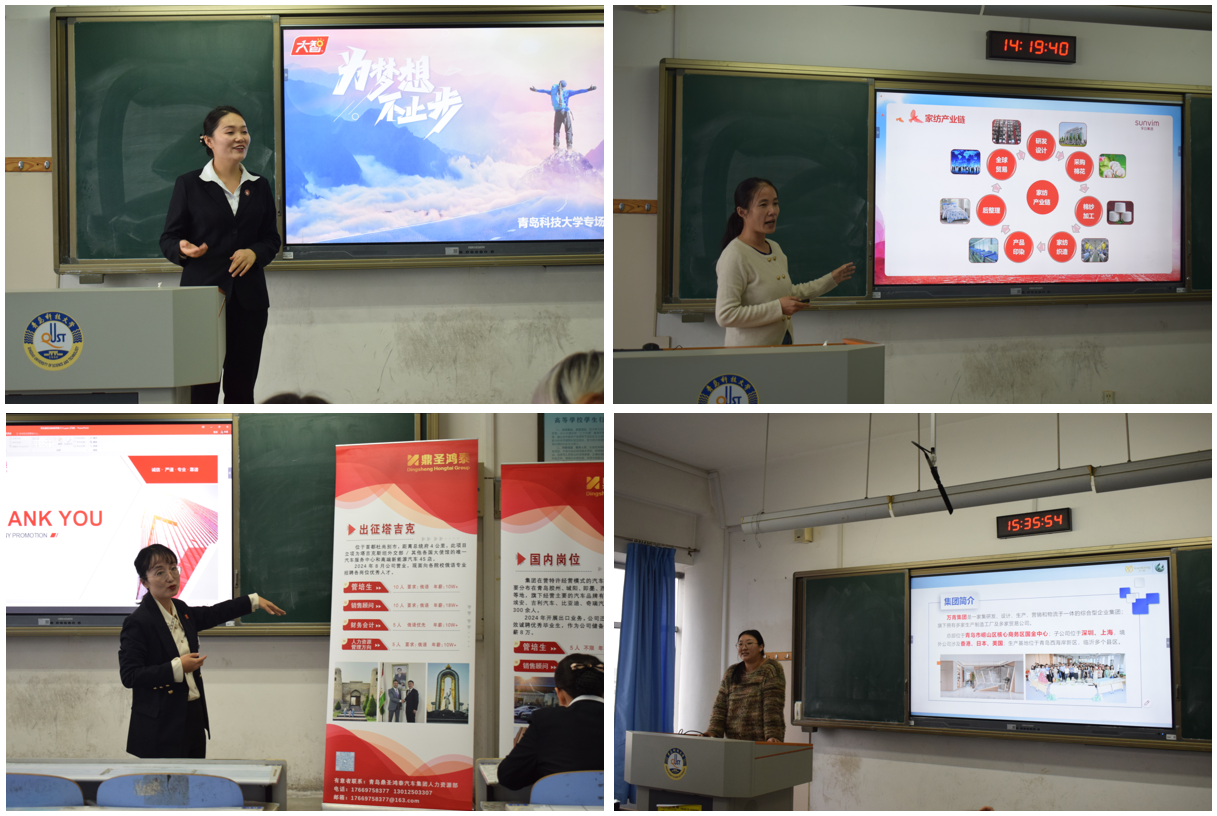 主题班会结束后,孚日集团股份有限公司等6家受邀企业依次开展招聘宣讲。宣讲会现场气氛热烈,员工们求职态度积极,企业代表介绍了关于我们、企业文化和职业前景,并对员工们的表现给予了高度评价,表达了对优秀人才的期待。