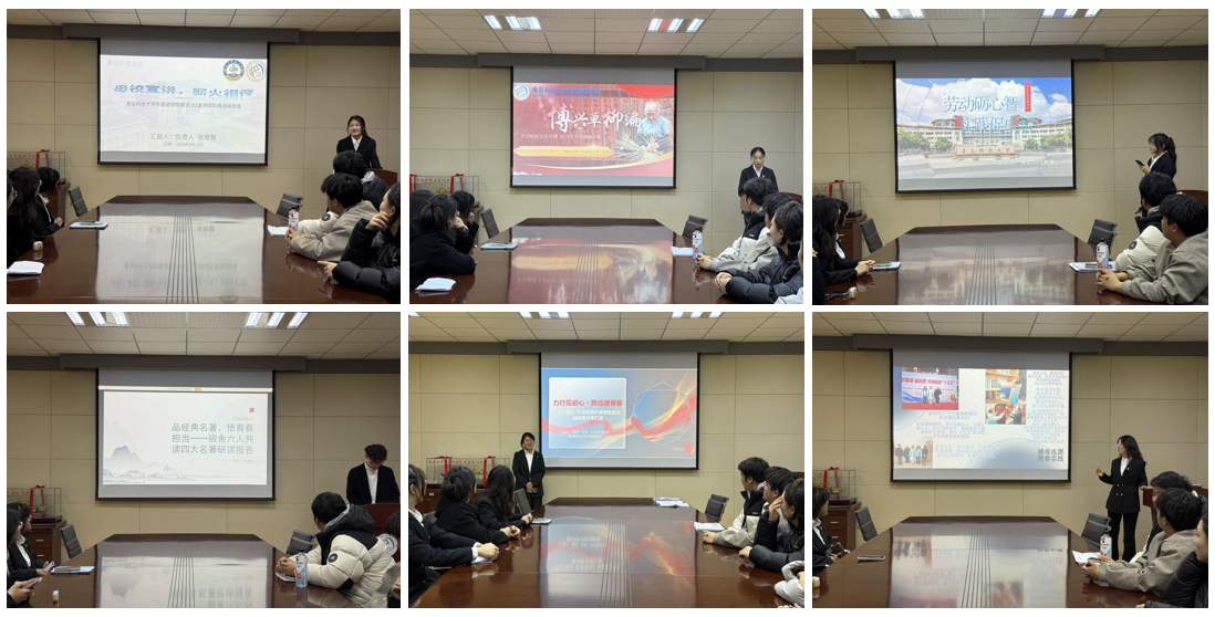 会上,实践团围绕“专业赋能基层”“文化出海路径”“乡村振兴外语服务”等主题深入交流,现场气氛热烈。来自各实践团的汇报人结合鲜活案例,分享将语言能力转化为服务效能的创新探索。公司赴滨州市博兴县“柳编新韵·非遗助乡兴”实践团以外语赋能,助非遗出海;“力行致远”实践团则以“北斗式”分布扎根齐鲁大地,以实践进行担当,守护民生温度,传播非遗文化。暖冬志愿青春实践团队则走进社区,他们以雷锋精神为指引,以行立德,用温度传递青年力量。种植园实践团队则深入家乡种植园大棚,以跨学科视角观察现代农业发展,用行动扎根乡土,展现青春担当。部分实践团坚守“薪火相传,以讲育人”的信念,返回高中母校开展经验分享,在“传帮带”中彰显高校学子的引领作用;还有团队以“四大名著”共读为载体,引领青少年在品读经典中坚定文化自信,提升人文素养。