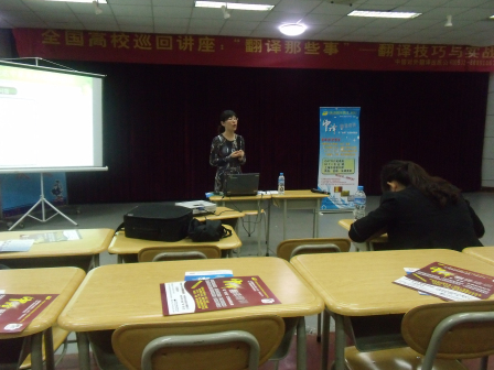 由中国对外翻译出版公司主办的主题为“翻译那点事”的中国高校巡回讲座之bw必威西汉姆联官网专场于6月6日在崂山校区老员工活动中心举行。中国对外翻译出版公司的杨皓老师及青岛市外事翻译处从媛老师出席了该讲座。