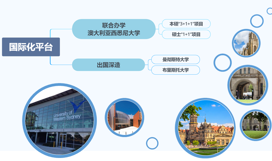 本专业设有与澳大利亚西悉尼大学联合培养学士和硕士的项目,为员工提供出国学习生活的机会。英语专业毕业生就业部门包括政府外事翻译、跨国公司、外资企业、大型国企、英语教育行业等。